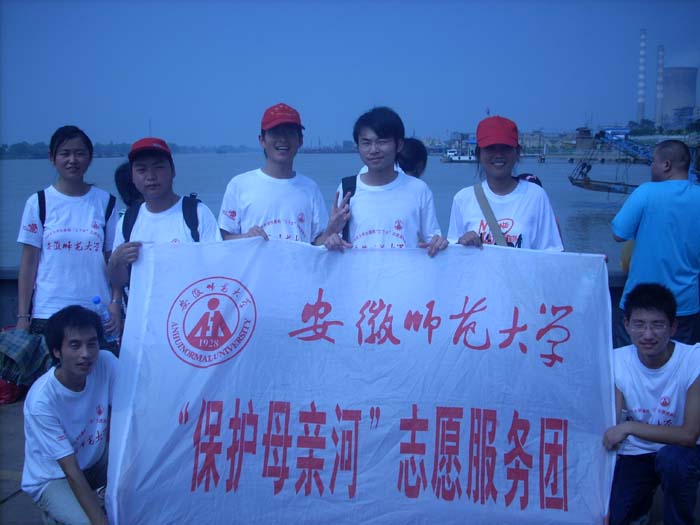 14时30分,队员们乘坐货轮来到了河对岸的淮上村开展环保调研。整个实践调查围绕淮河周围的受污染状况、淮河周围居民的生活状况、淮河垃圾的处理情况等方面持续了两个多小时,从老人到中年人到孩子,队员们都进行了有针对性的调查和记录。虽然骄阳似火,队员们很快就汗流浃背了,但这些丝毫没有减退队员们参与实践调查的热情和激情,为了环保,他们脸上始终是洋溢着幸福的微笑。最后,队员们还带回了两瓶水样:一瓶是淮河水,一瓶则是当地居民所饮用的井水,准备送到淮南市环保局进行检测分析。