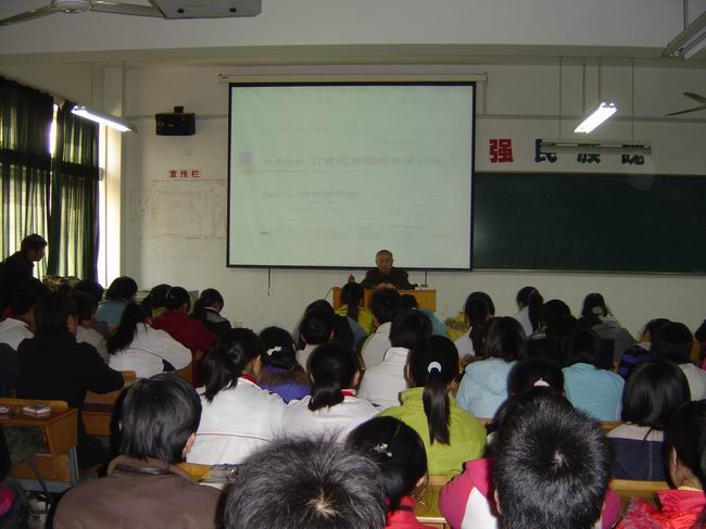 2008年11月29日下午,在安师大赭山校区田家炳楼8310教室,开展了由学工部、关工委以及化材院主办的老员工基础文明建设月系列——讲座日活动。此次活动特别邀请必一运动前任教学副经理宫世国教授为08级员工作专题讲座。