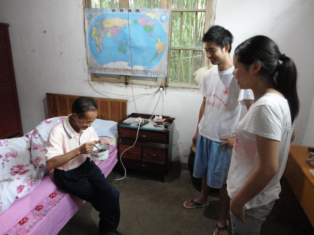 于是,2010年7月10日上午,同学们买来了饺馅跟面皮,开始在农户家里与村民一起包饺子。想着老人们将会吃着自己包的饺子,同学们包饺子的时候都显得非常高兴。包好饺子之后,同学们按两人一组给村中的老人们送去,并帮他们煮好饺子。吃着同学们送的饺子,老人们都很高兴。欢笑声中,同学们开始去其他老人的家。挥手说再见,同学们看到似乎有些晶莹的东西在他们的眼中闪烁。