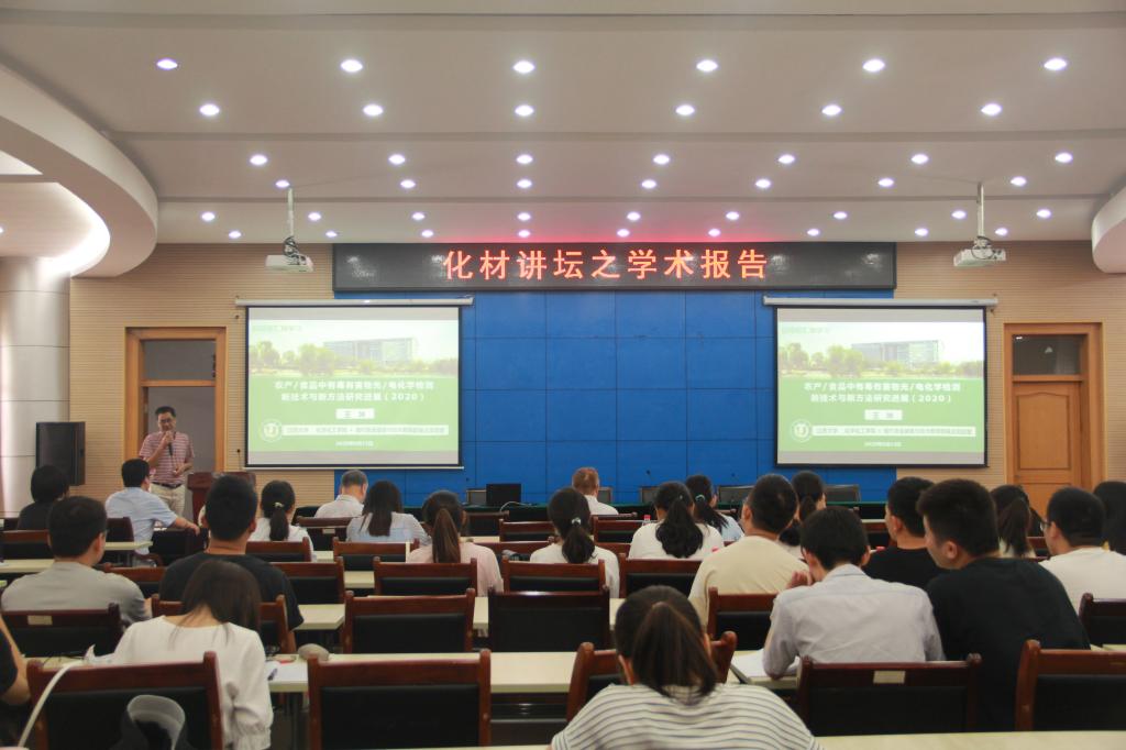 王坤教授作了题为“农产/食品中有毒有害物光/电化学检测新技术与新方法研究进展(2020)”的学术报告。王教授首先结合当下背景阐述了农产/食品安全形势严峻,依此结合生物识别元件的高特异性,设计制备了一系列功能性纳米材料,依靠光电化学传感、自供能传感技术、电化学发光传比色/可视化传感、荧光/可视化传感等技术深入研究了这些纳米材料在农产/食品检测领域的应用。会后王坤教授与与会师生进行了交流互动。
