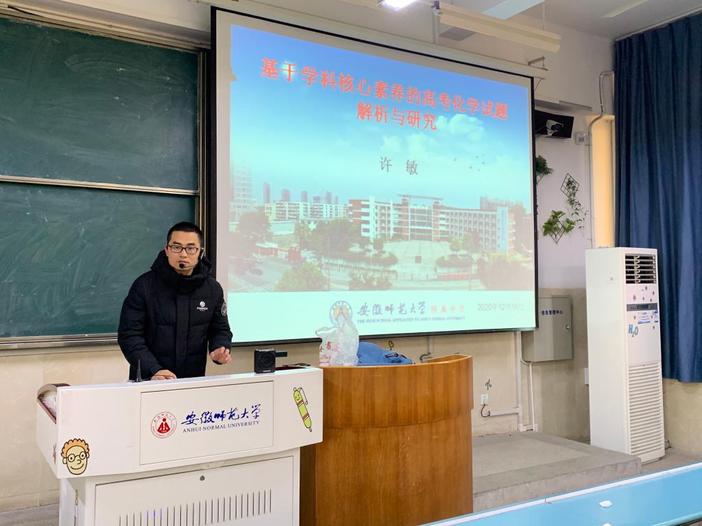 2020年12月16日上午8:00教学楼2010303教室2018级化学师范生悉数到位,聆听安师大附属中学许敏老师的精彩授课,此次授课的主题是《基于学科核心素养的高考化学试题解析与研究》。把一线优秀中学化学教师请进大学课堂的这种形式至今在师范专业本科生中已延续近六年,受到了广大师范生的一致好评,这种形式不仅实现了课程连接学校和社会,又突出了师范教育的特色。这也是2020年必一运动“中学化学名师讲坛”系列活动的第十讲。