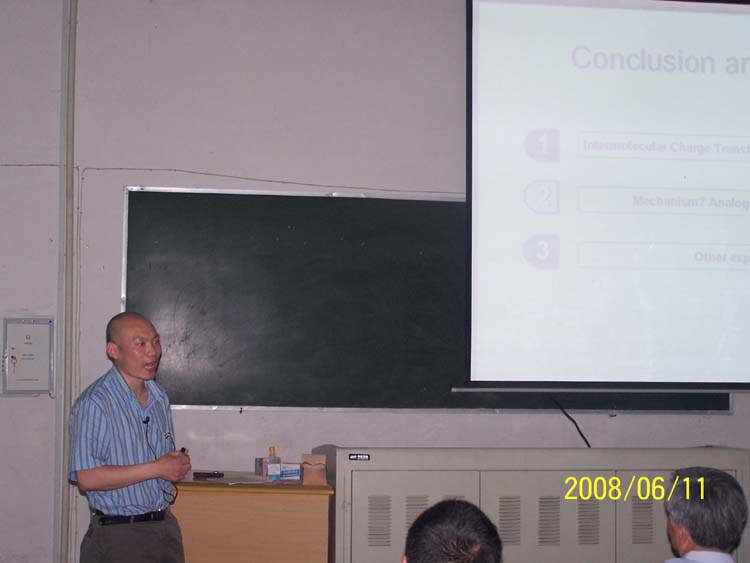 任小明教授为公司师生作了题为“∏-∏电子堆积效应对分子的影响”的学术报告,报告中任小明教授介绍了如何采用各种分析手段,寻找有关∏-∏电子堆积效应对分子的影响证据,为研究分子材料的性能提出了新的思路。整个报告过程中,任小明教授以其风趣幽默的语言将他在这一研究方向中所做的工作以及所取得的成果逐一叙述出来,报告深入浅出,受到在场师生的一致好评。