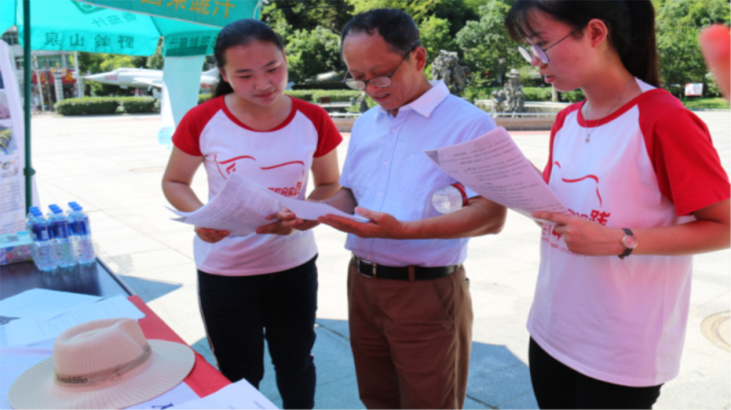 同时,为大力宣传大国科技,“青年红色筑梦之旅”团队还带去了本队的“文化产品”,即团队提前制作好的宣传本国科技的宣传册、宣传单和宣传展板。展板分别从“中华上下五千年”、“新时代国防”、“生态文明”、“人工智能”和“互联网”五个方面介绍了大国科技。丰富的文字,精彩的图画,引来了许多游客的关注。部分队员们还担当起展板的讲解员。竞答的题目主要结合了展板中的科技内容和馆内的相关红色知识,路过的游客们、其他参加暑期社会实践的老员工,甚至是博物馆的工作人员也都纷纷积极投入竞答中去。