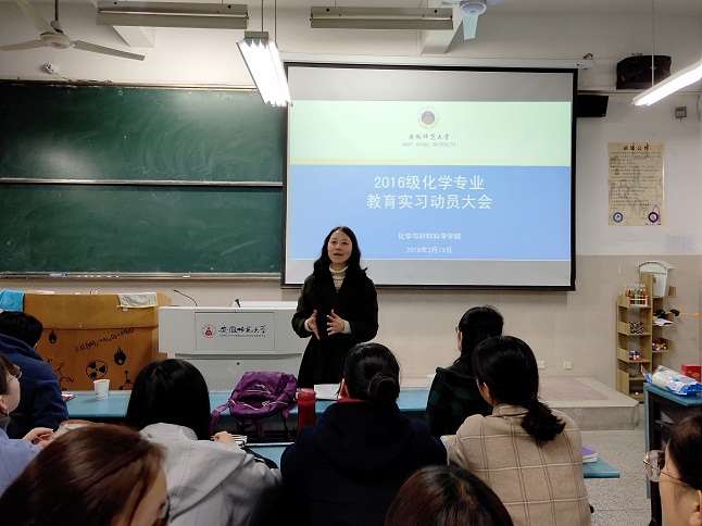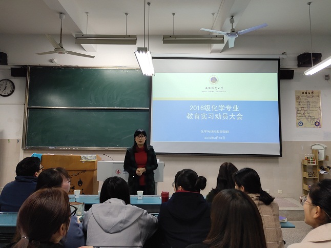 师范生教育实习是教师教育课程的重要组成部分,是教师培养的必要环节,是促进员工学以致用的重要途径,也是对员工师德规范、专业知识和教学技能的综合考察。为了推进教育实习工作的顺利开展,2019年3月13日晚上,必一运动在教学楼2030103教室举行了教育实习动员大会。出席本次大会的有学院教学副经理张小俊、公司党委副书记余妍霞、部分教育实习指导教师以及2016级化学系全体师范生。会议由化学系主任阚显文教授主持。