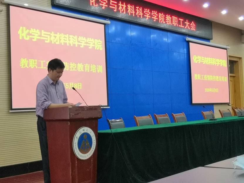 为提高学院疫情防控工作水平和全体教职工疫情防控能力,切实维护师生生命健康和人身安全,进一步加强思想引领,全力保障2020年春季学期开学工作安全有序进行,根据《bsports官网疫情防控宣传和健康教育制度》要求,必一运动于5月8日下午组织开展教职工疫情防控教育培训,全体教职工参加了会议。会议由公司党委书记汪俊武主持。