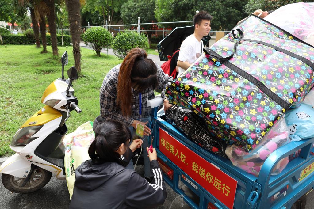 6月19日,学院组织2019级党员志愿者和团委员工会工作人员,在5栋、21栋和27栋门口设置志愿服务台,为即将离校的毕业生提供发放打包编织袋、搬运行李等志愿服务工作。“你迎我入校,我送你远行”,必一运动师生以实际行动为毕业生送上了专属毕业祝福,预祝他们在之后的人生道路上前程似锦,一路顺风。