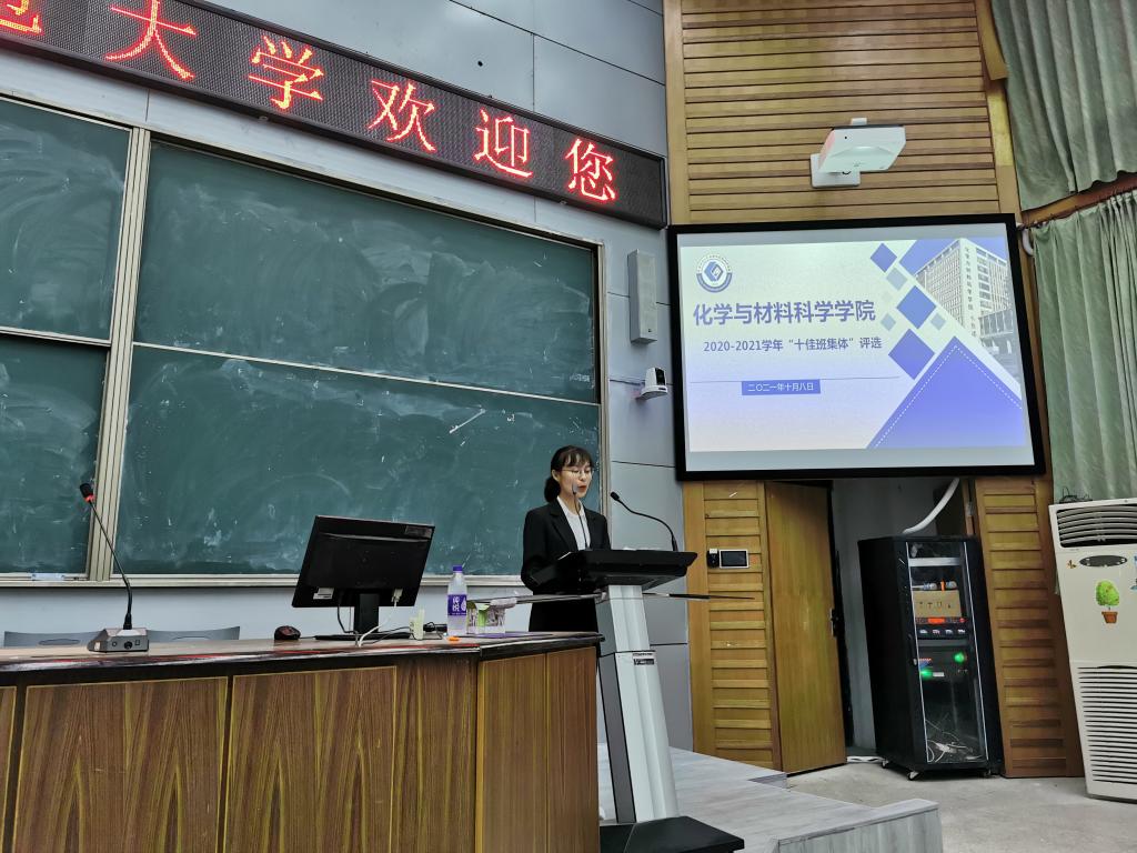 汇报中,各班级结合专业和特色,详细介绍了班级在组织建设、思想引领、学风建设、基础文明等方面的做法与成效。在组织建设方面,各班级建立合理的班级管理制度,广泛听取班级成员的意见,充分发挥班集体的民主性;在思想建设方面,班级定期开展思想政治理论学习,开展青年大学习及特色主题团日活动,在思想引领上体现先进带头作用。在文明建设方面,各班级充分落实学校相关规章制度,共建文明寝室、党员示范寝室。在展现风采的同时,各班级代表用具体实例展示各班良好学风,师范专业自创“教学技能小组”以学风带动班风建设,拔尖人才专业推进全员进实验室开展科学研究,共同展示化材学子独特科研魅力。