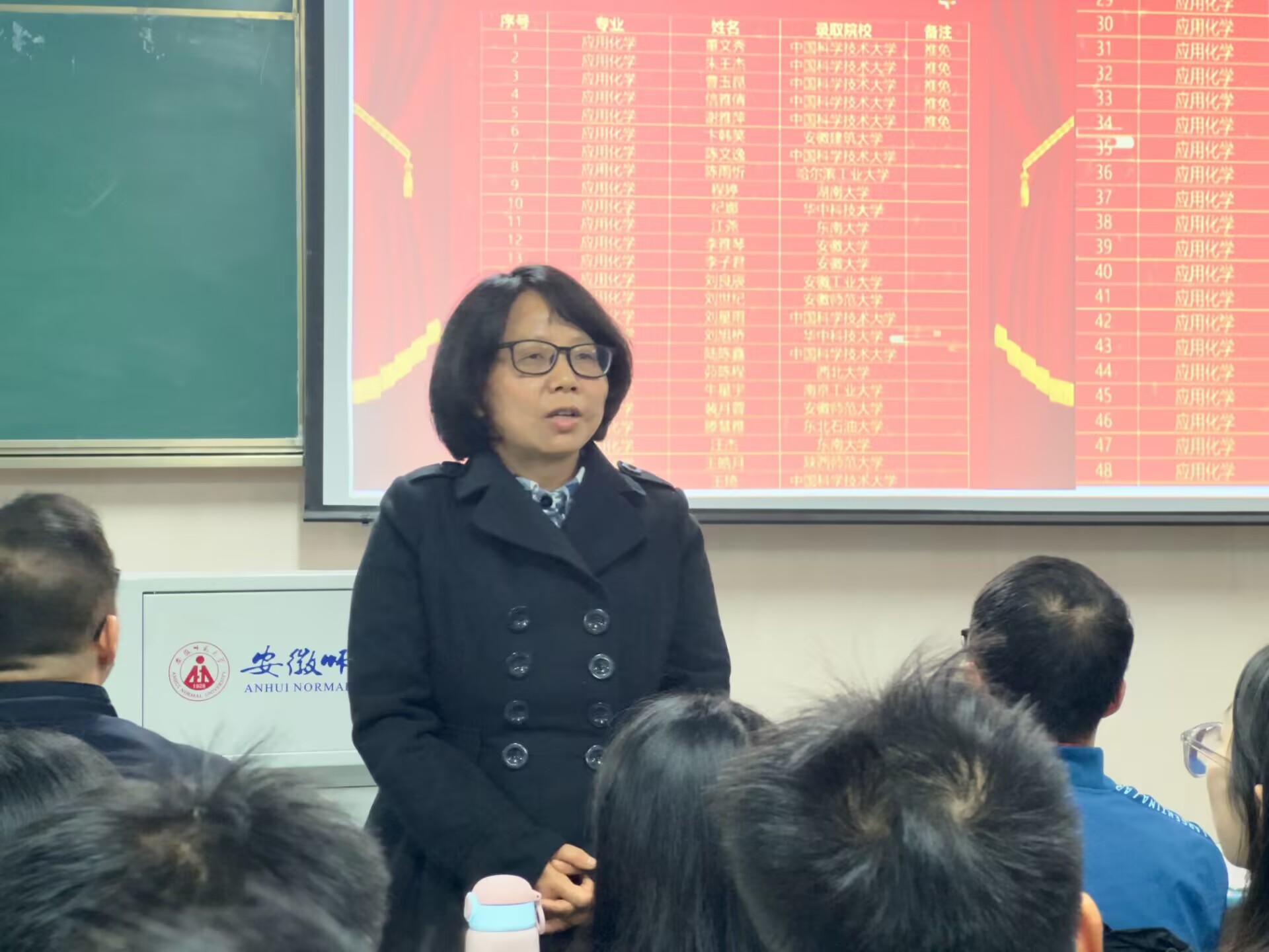 章青老师介绍了必一运动应用化学专业自建系以来的几十年发展历程以及专业团队力量,全员博士的教学团队让人不禁为此自豪。详细向同学们讲解学习应化专业以后的就业方向与前景,展示了本届应化专业学长学姐们优秀的考研成绩,为所有新生树立了榜样!