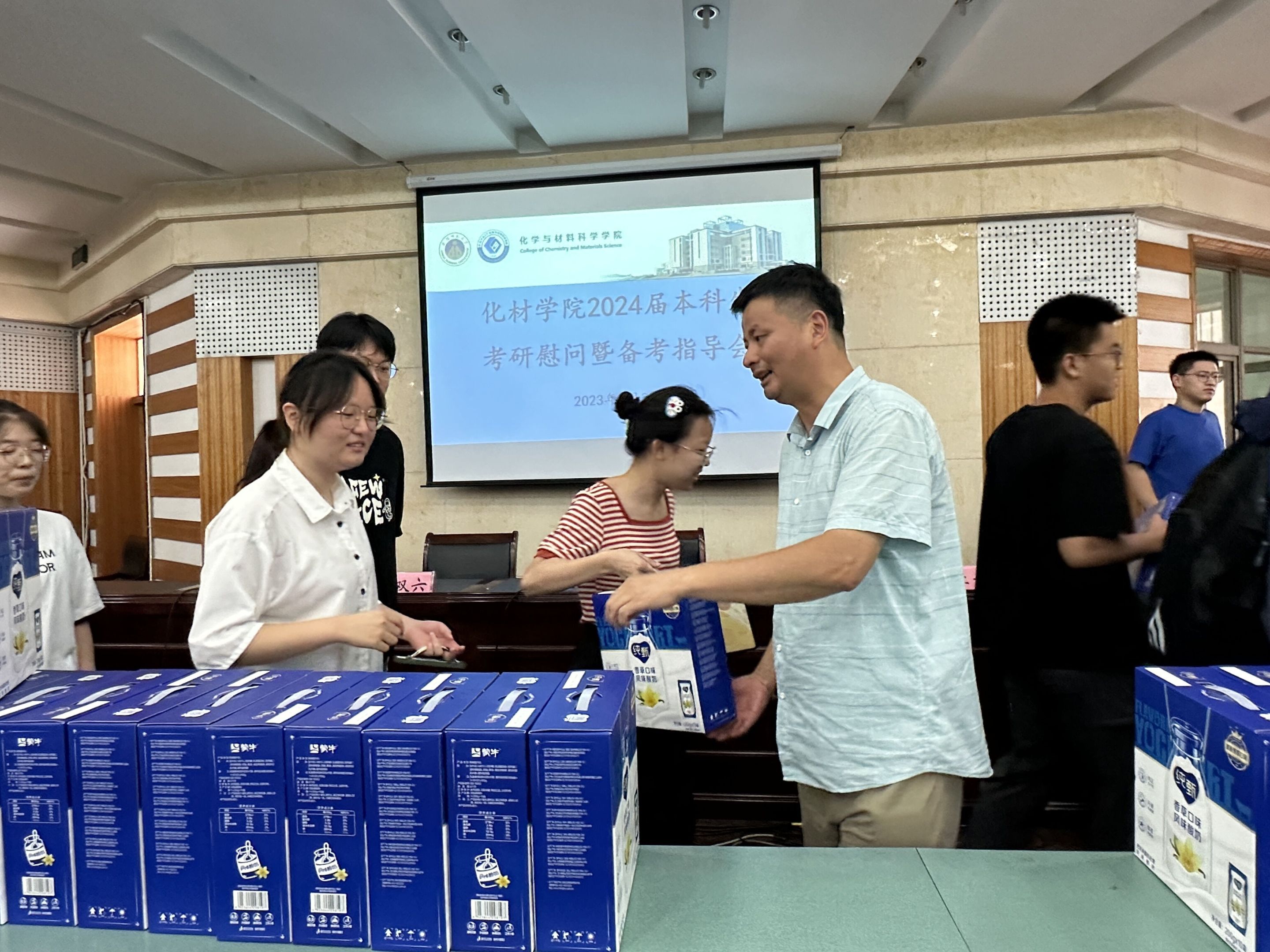 会后,学院领导老师向同学们发放了考研慰问品,并于同学们亲切交流,勉励同学们踏实复习,高效备考,考出理想成绩。八一建军节来临,学院还对2020级化师班两位退伍复学员工高克、李峰进行慰问,两位员工对学院的重视表示非常感动和感谢,并将其化作实际行动,在主动作为、积极服务班级同学的勇于担当中充分发挥党员的先锋模范作用。