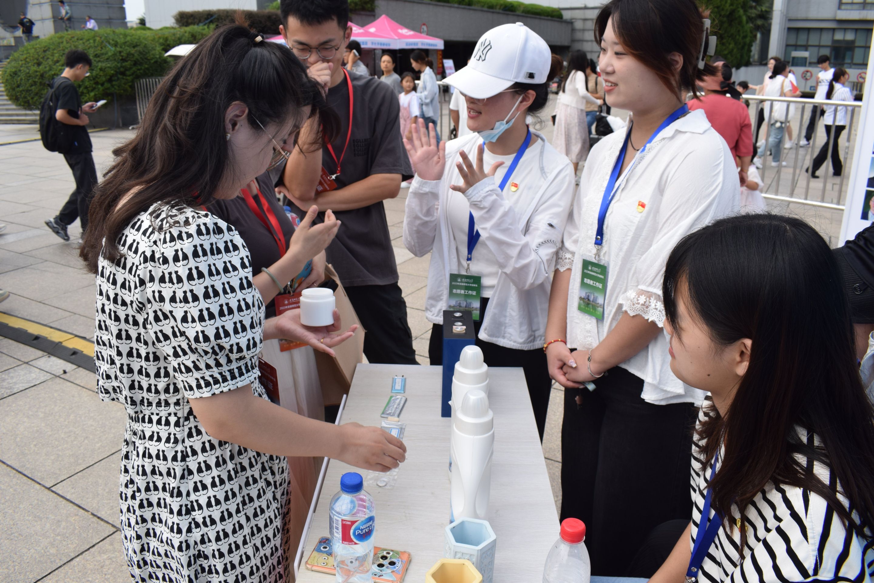 在迎新现场,必一运动传承迎新经典项目,努力为2023级新生上好大学“第一课”。实训作品展展示了环保笔筒、护肤霜、锂电池、留香洗衣液等一系列员工实习实训自制产品;新生礼品袋里定制笔记本、定制卡套、帆布包及环保杯,体现出学院老师、同学对新生的殷切关怀;志愿服务岗和党员先锋岗上高年级员工在志愿迎新工作中展现“化材人的样子”。