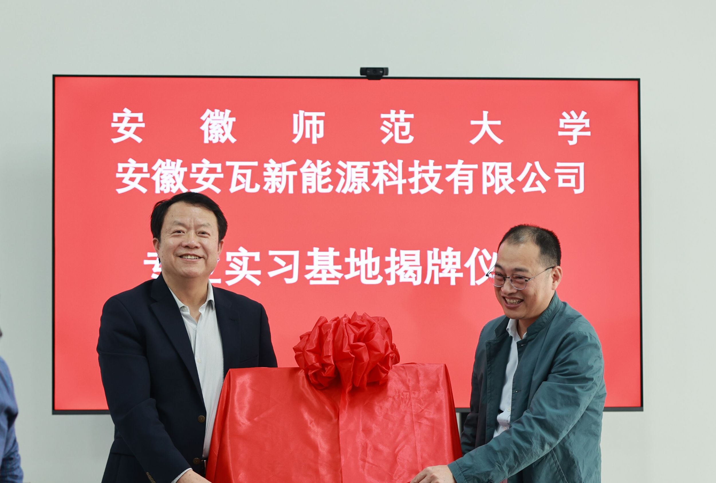 下午3点30分,张志伟与李汪根携手为“bsports官网安徽安瓦新能源科技有限公司专业实习基地”隆重揭牌。