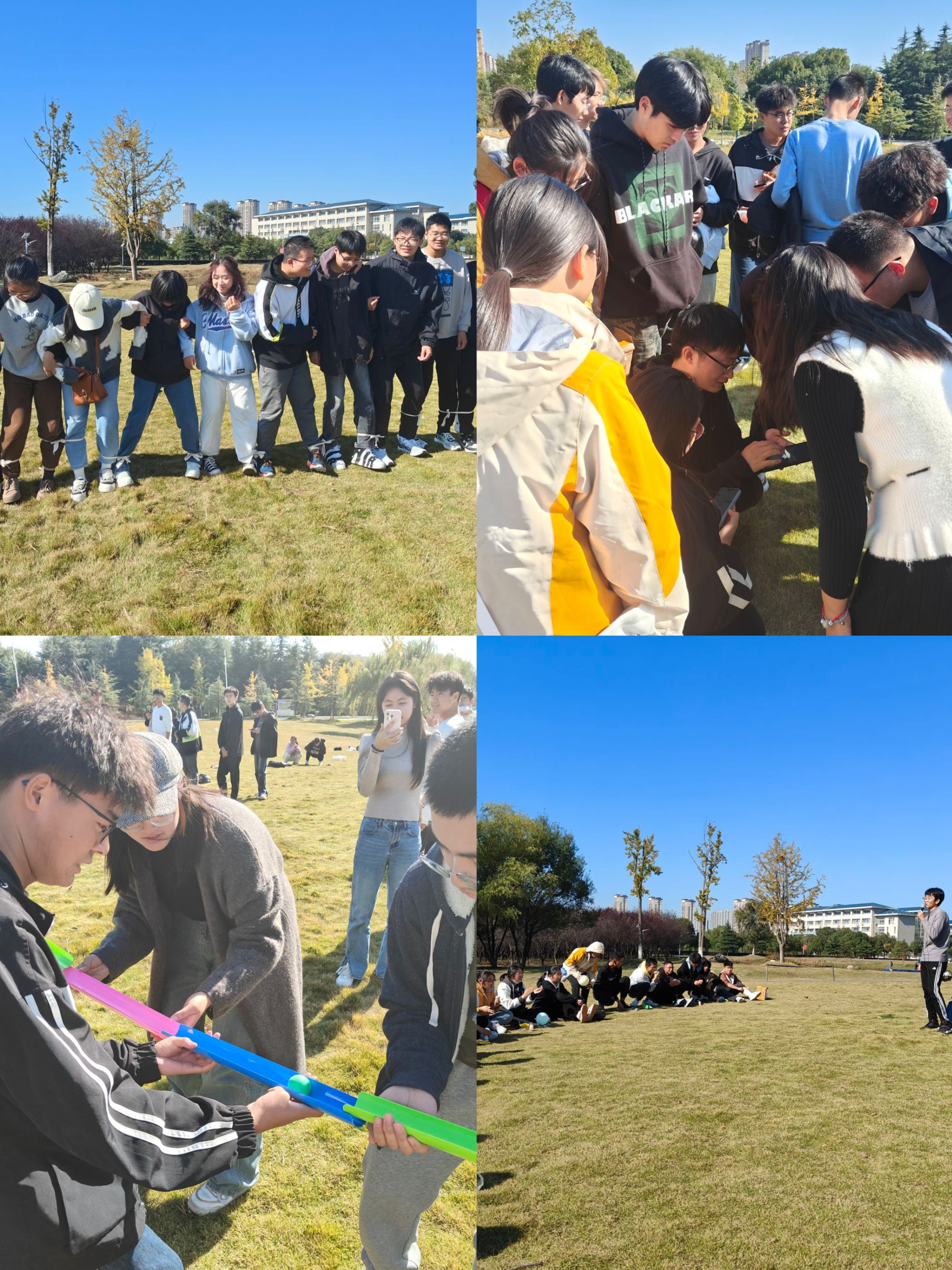 活动开展期间,2023级各专业的同学们按照活动方案,有序进入社区相应场地,在活动负责人的指引下陆续开展团建活动。在“破冰”环节,同学们通过各种有趣的自我介绍方式,打破了陌生感,拉近了彼此的距离。“信任背摔”、“绳索挑战”、“团队接力”、“知识竞赛”等一系列团队游戏不仅考验团队协作能力,同时增强了同学们的集体荣誉感。活动现场气氛热烈,欢声笑语不断。