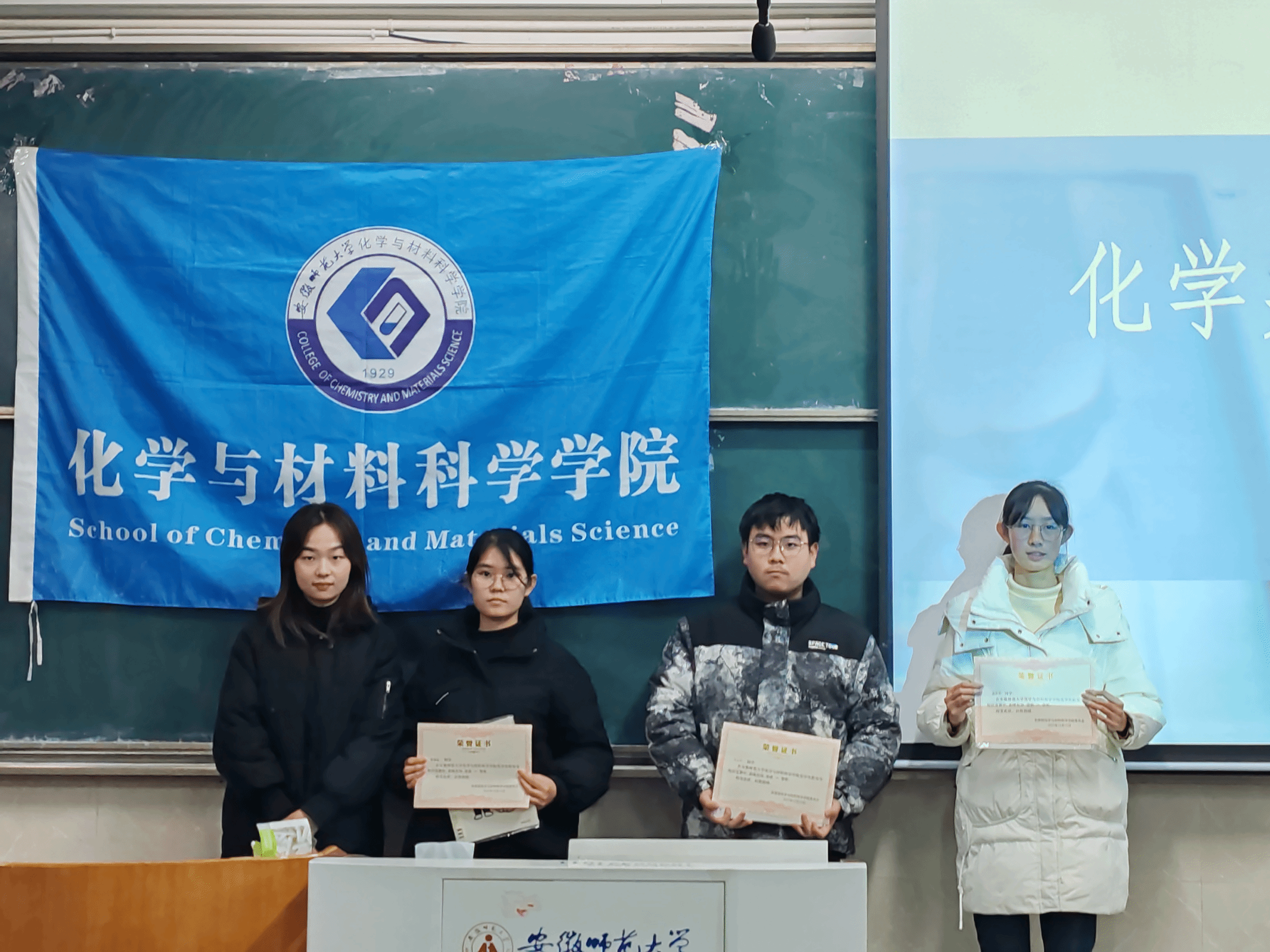 经过激烈的角逐,应用化学专业孟茹茹、方心志、蒋静如三位同学夺得桂冠,其他专业各选手也分别取得了优异好成绩。王霞老师,史若雨,丁刘灿分别为获奖选手颁奖,最后老师和各专业选手以及现场工作人员合影留念。
